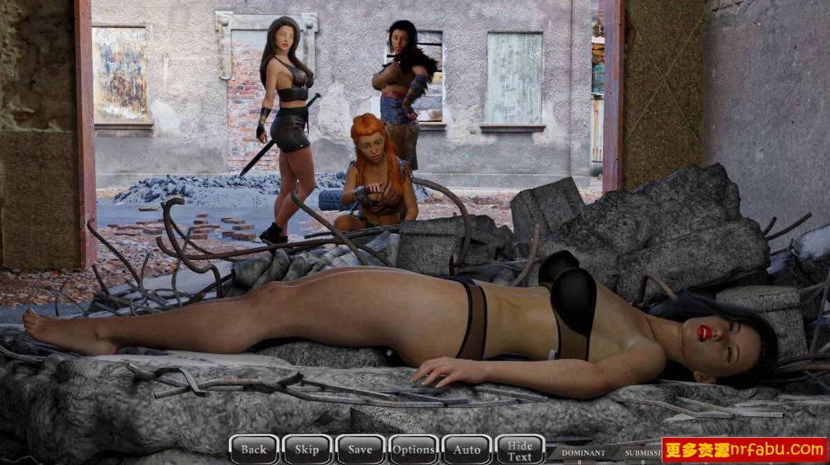 女战士部落恶人在废墟中发现了她,她失去知觉,但没有受伤。