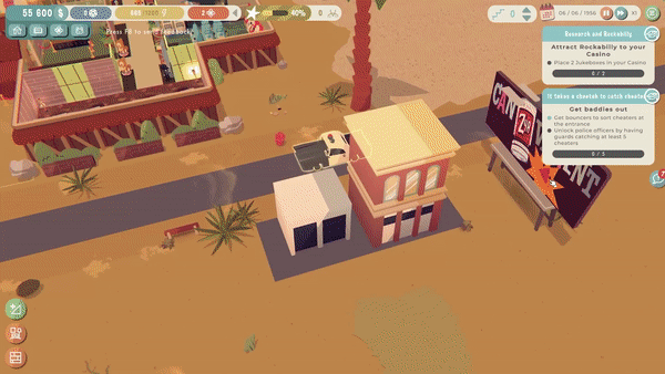 在这款以 1950 年代拉斯维加斯崛起的风光年华为背景的经商游戏中,你的任务是接手一家萧条的娱乐场所,完成任务,维护老主顾们,想办法获得最大利润。随着收入和声望的提升,你的场子层次也会提高,从尘土飞扬的沙漠一路来到拉斯维加斯之巅。